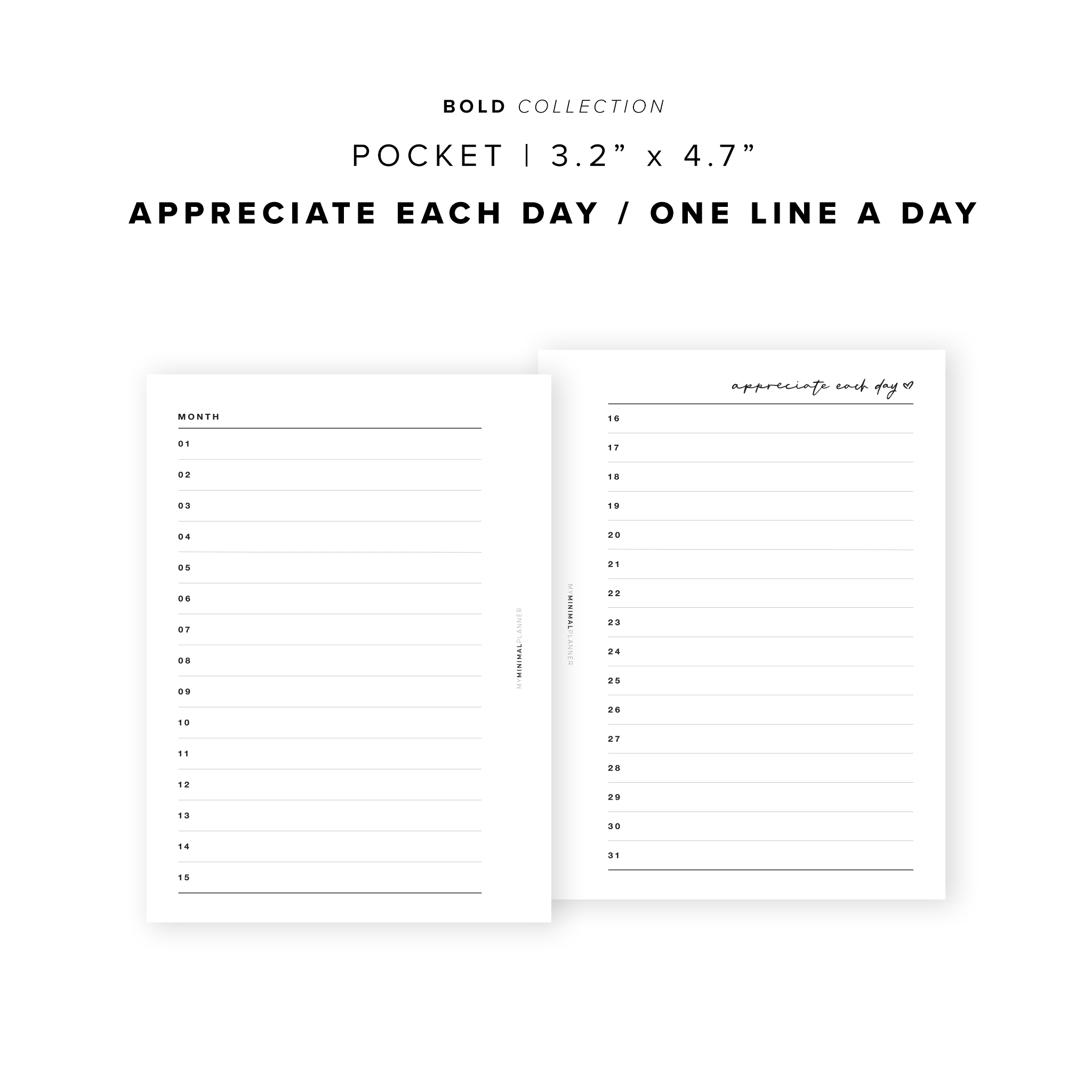PR28 Appreciate Each Day / One Line A Day Printable Insert